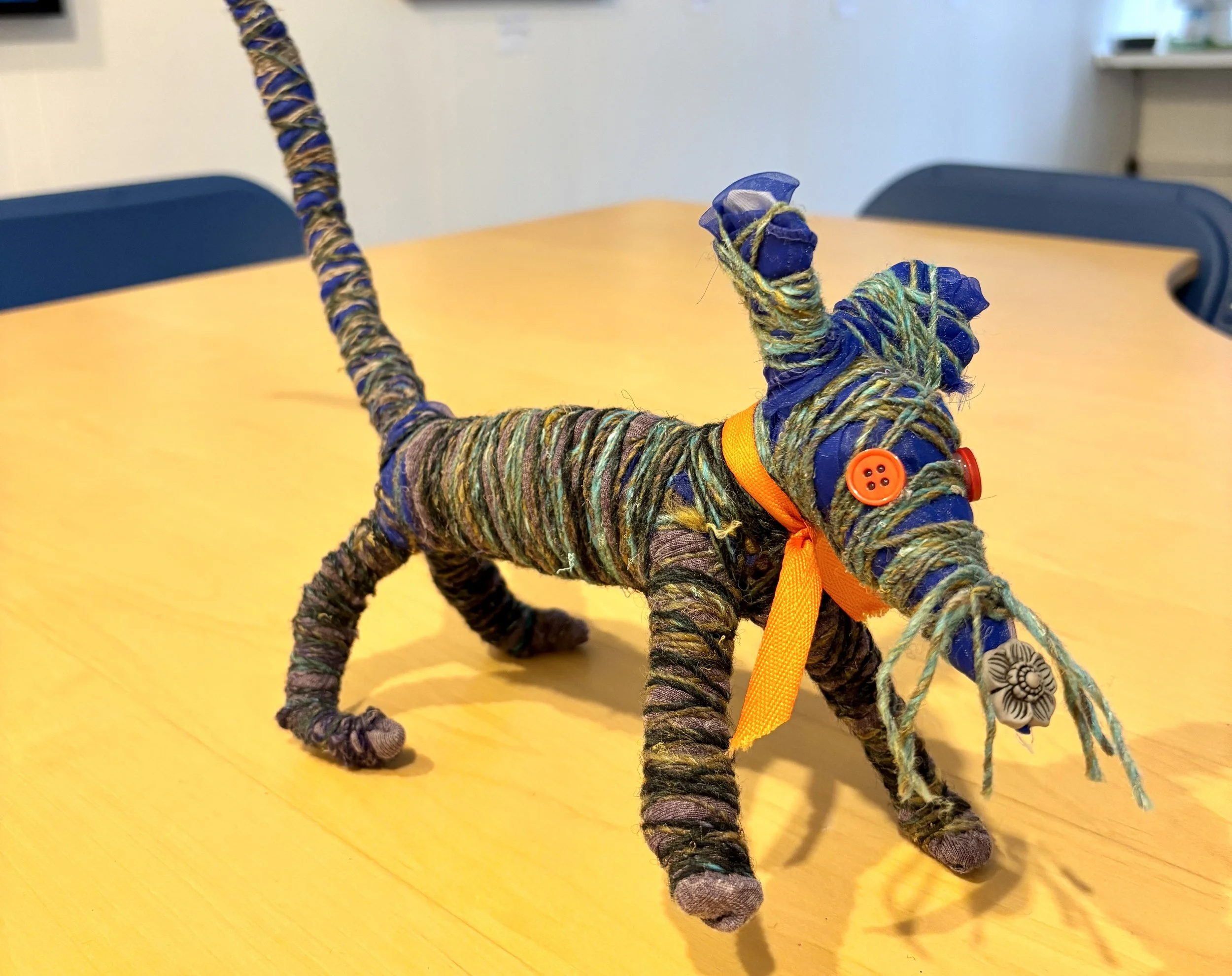 All you need to make a fabric wire sculpture is wire, paper, tape, fabric, yarn, and a lot of creativity! There will be no templates to copy or patterns to follow as every child will design their own animal. Our teacher will support the creative process by introducing the materials we have available, and by assisting with challenges while constructing the body of our sculptures.