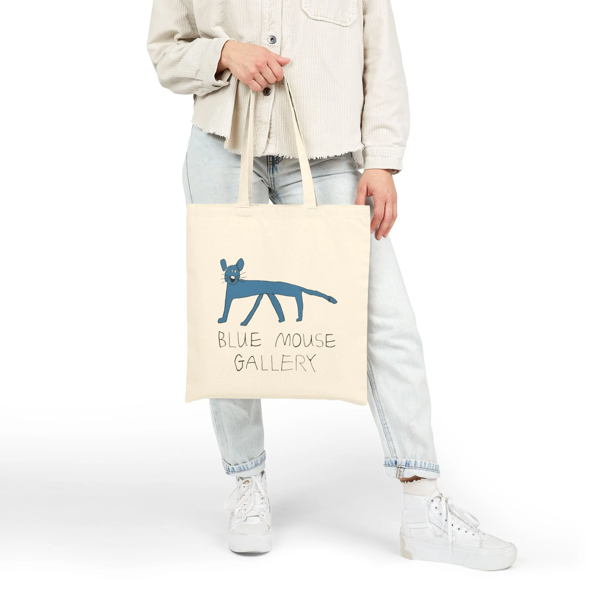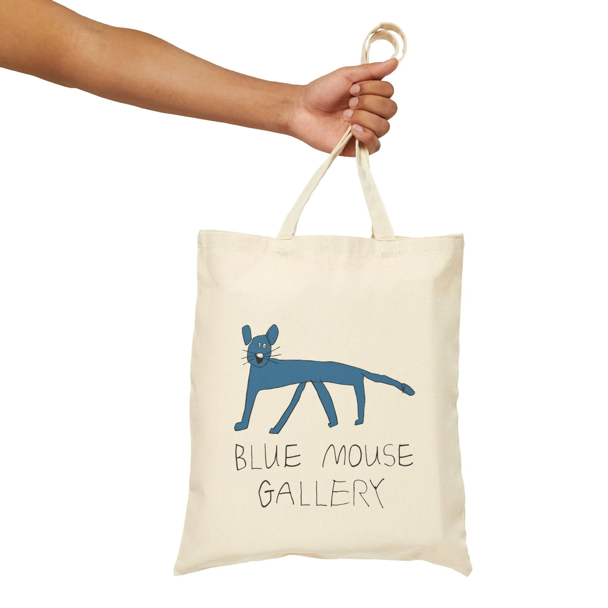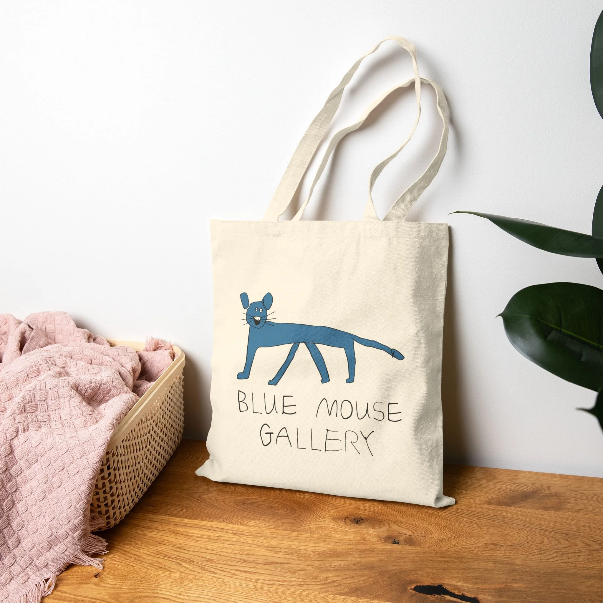 Like every good museum, Blue Mouse Gallery has a gift shop. It features our beautiful logo which was designed by two of our own artists, Oliver and Rike. Oliver drew the original blue mouse, then both siblings designed the unmistakable letters that proudly spell our name. Share the joy of being part of the Blue Mouse community by wearing our logo!