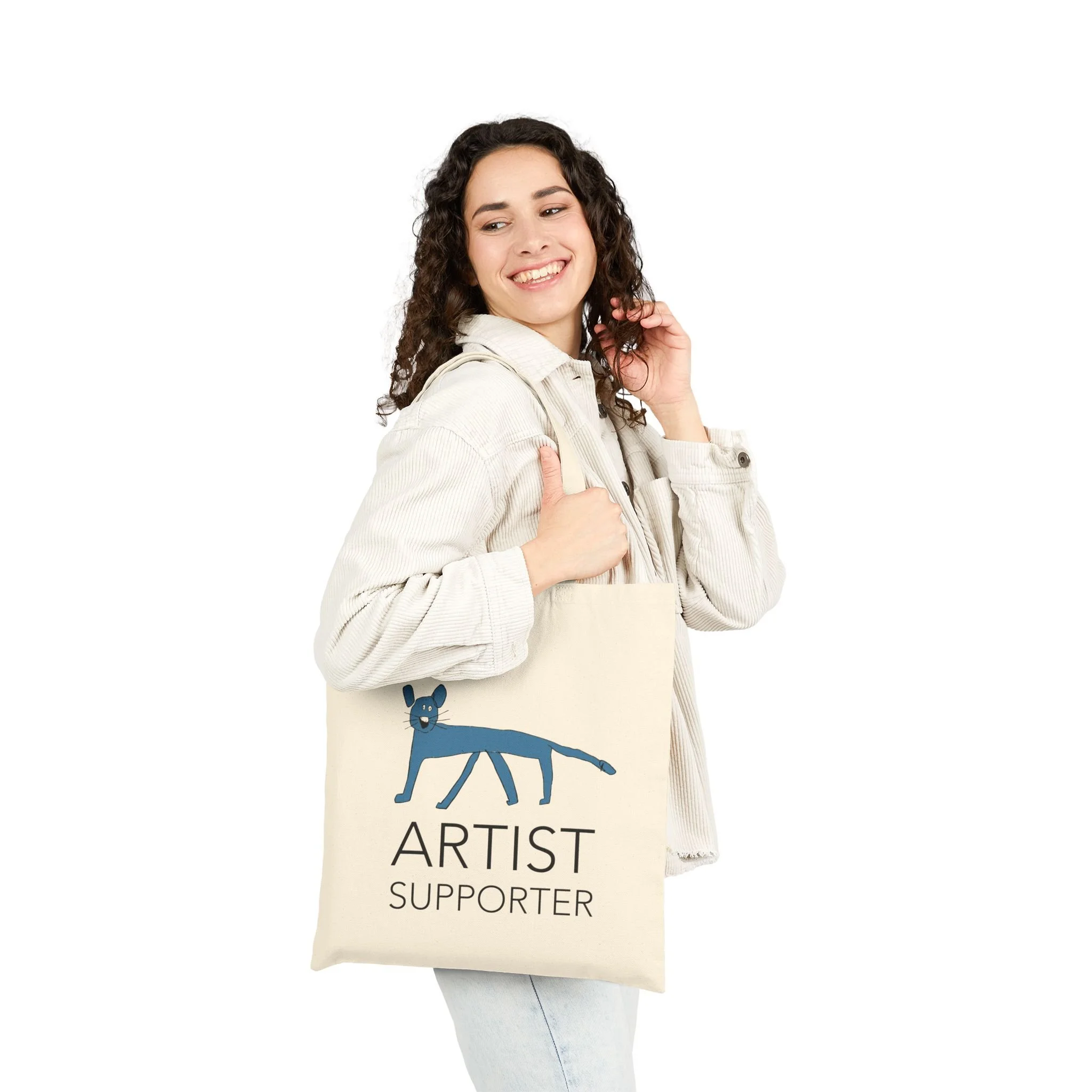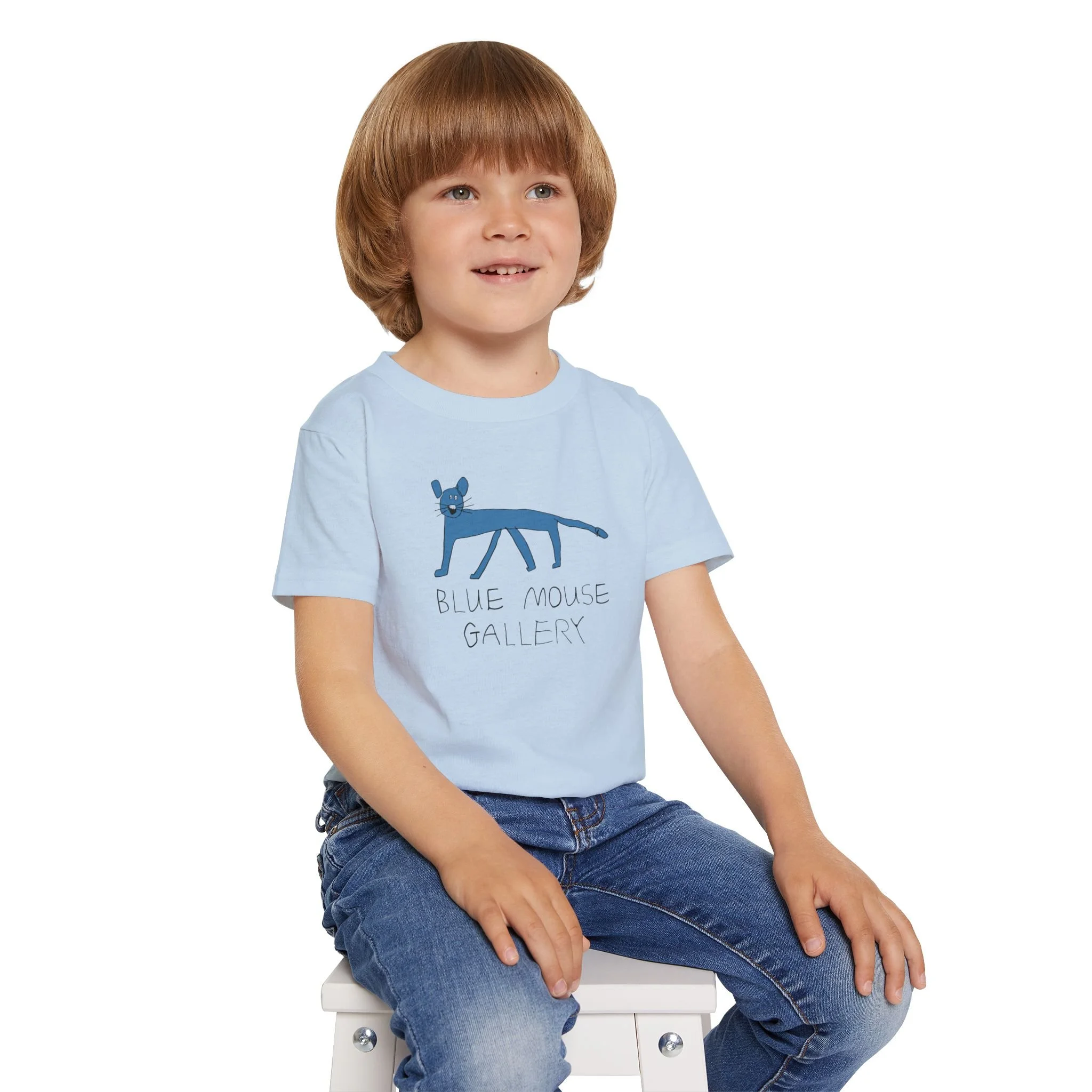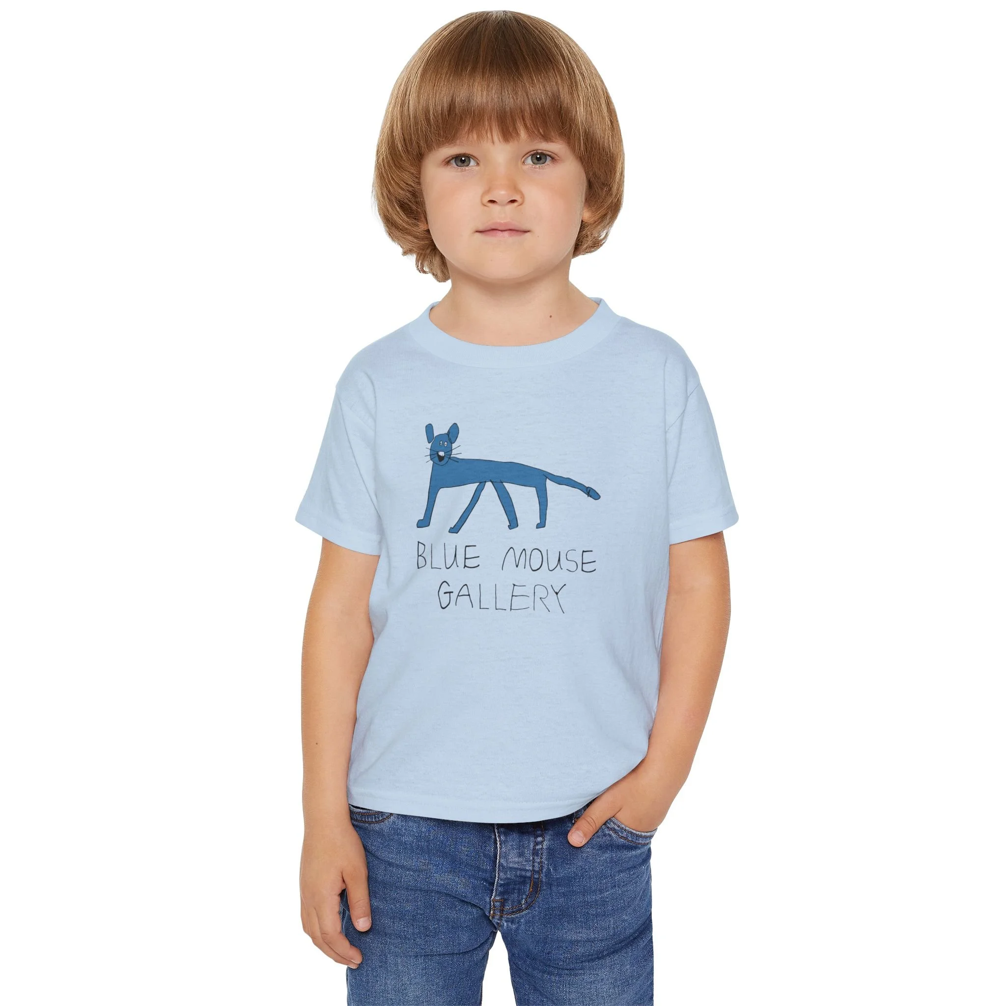 Like every good museum, Blue Mouse Gallery has a gift shop. It features our beautiful logo which was designed by two of our own artists, Oliver and Rike. Oliver drew the original blue mouse, then both siblings designed the unmistakable letters that proudly spell our name. Share the joy of being part of the Blue Mouse community by wearing our logo!
